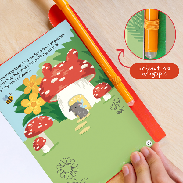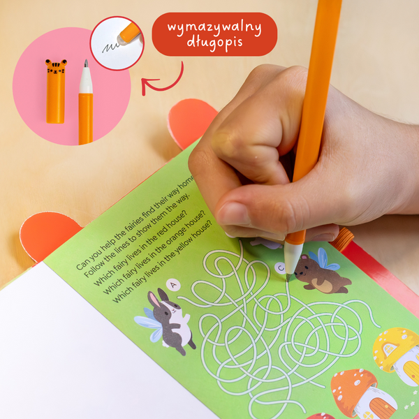Kompaktowa książeczka aktywności, która zajmie dziecko w domu i w podróży. Motyw wróżek, mnóstwo łamigłówek i zmazywalny pisak – wracacie do zadań tyle razy, ile chcecie.