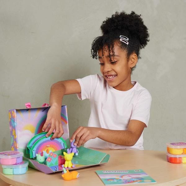 Kolorowy zestaw artystyczny Plastyczna Przygoda: Jednorożce to idealny sposób na rozwijanie wyobraźni i zdolności manualnych dziecka. Kompaktowe pudełko skrywa wszystko, co potrzebne do tworzenia magicznych scen z jednorożcami – bez bałaganu i bez ekranu.