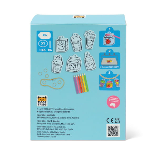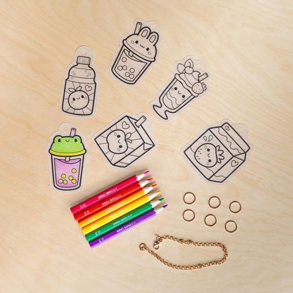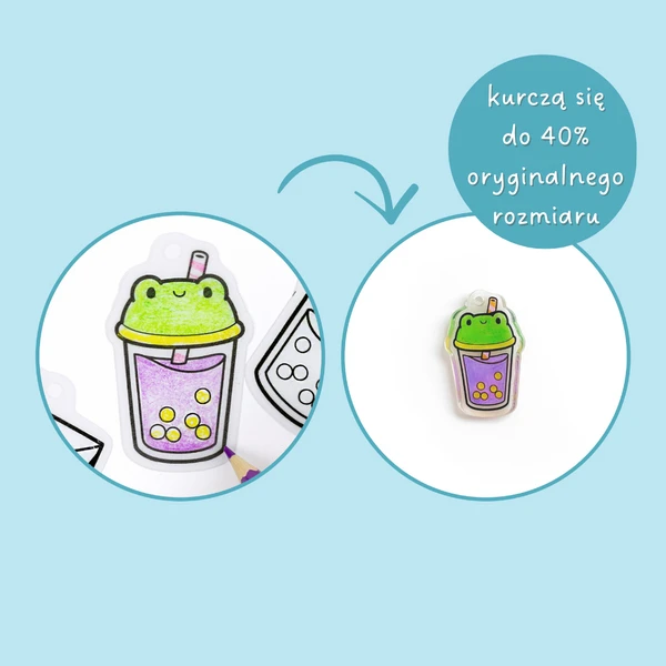 Kreatywny zestaw do stworzenia własnych zawieszek i bransoletki z elementów termokurczliwych. Pokoloruj, włóż do piekarnika i zobacz, jak zawieszki kurczą się do ok. 40% rozmiaru, a kolory robią się intensywniejsze.