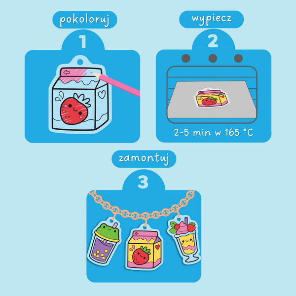To połączenie rysowania, małej “magii” w piekarniku i gotowego efektu w postaci bransoletki. Zestaw wspiera koncentrację, cierpliwość oraz motorykę małą.