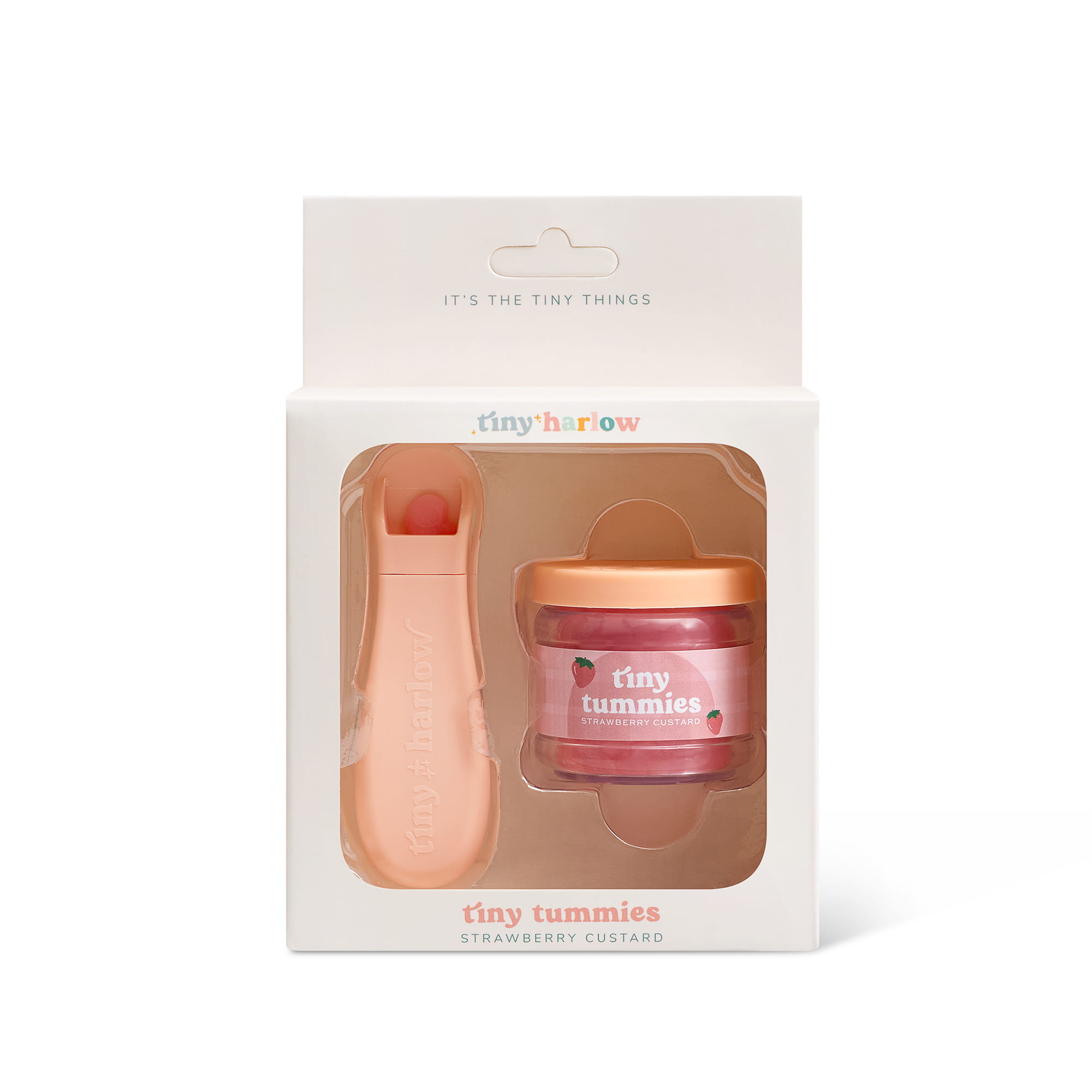Zestaw Tiny Harlow Tiny Tummies w wariancie Truskawka to estetyczny dodatek do zabawy w karmienie lalki i tworzenie codziennych scenek. Słoiczek i łyżeczka pomagają urozmaicić zabawę oraz rozbudować kolekcję akcesoriów dla lalek.