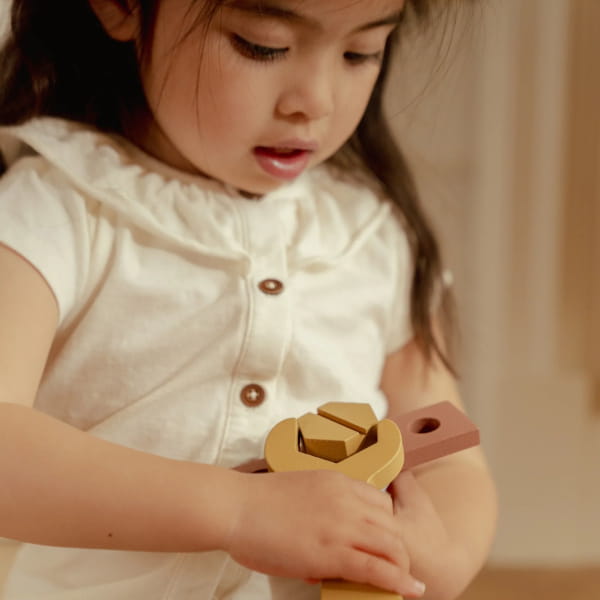 Zestaw majsterkowicza Toolbox to drewniana zabawka dla dzieci, które lubią działać, budować i naśladować dorosłych w codziennych czynnościach. W komplecie znajdują się podstawowe narzędzia, takie jak młotek, śrubokręt i klucz, a sama skrzynka może służyć także jako tablica do wbijania. To zabawa, która daje dziecku poczucie sprawczości, wspiera rozwój motoryki małej, kreatywności i wyobraźni oraz zachęca do spokojnej, angażującej zabawy już od 2. roku życia.